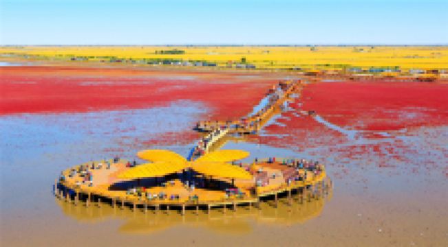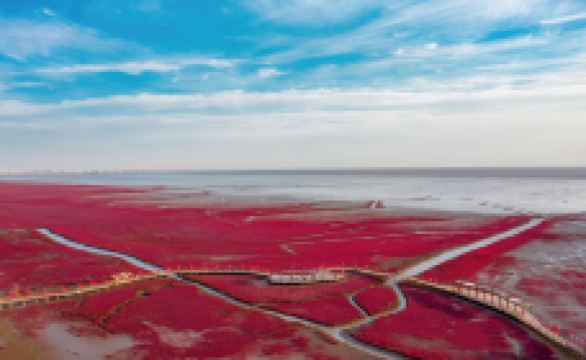 红色海岸线-红海滩国家风景廊道位于辽河入海口。2020年1月7日正式被国家文化和旅游部确定为国家AAAAA级景区。景区先后荣获“国家生态旅游示范区”“全国体育旅游精品景区”“国家湿地旅游示范基地”“辽宁省知名品牌示范区”等殊荣。