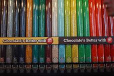 去纽约肯定要去时代广场走一圈,去时代广场肯定要去M&M巧克力世界走一圈。印有M&M造型的产品五花八门,从常见的玩具到型号齐全的各种服装。M&M's是美国的一种巧克力豆品牌。2004年,M&M's 被评为美国较受喜爱的广告标志。M&M's的广告语“只溶在口,不融在手”也被广告周刊评为2004全美广告名句。1941年,M&M's 牛奶巧克力正式诞生。由玛氏公司及好时公司一同打造。
