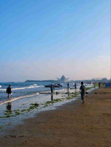 在黄岛金沙滩你可以赤脚漫步或奔跑,尽情地享受脚底柔软的沙滩,还可以带着孩子来此做沙雕、放风筝,或者是下水踏踏浪、游个泳,也可以去坐快艇、踩水上自行车、打沙滩排球。景区内还有旋转木马、海盗船、气垫儿童乐园等儿童游乐项目。