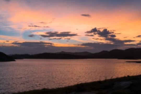 三十六脚湖,福建省较大的淡水湖。它是平潭的生命湖,总面积210万平方米,蓄水量1290立方米。其中,湖、海、山、林交相辉映,岩、礁、碑、屿穿插交错,湖平如镜,被称为海岛明珠。 三十六脚湖是平潭县城生活和工业用水的重要水源。周围海蚀地貌发育,景色绮丽,是闻名的风景区之一。 福建省帆船队将此地作为训练基地。湖滨拱卫着的有照镜山、牛山、海坛山等,层峦叠翠,山光流影,岸草阡阡,怪石峥嵘。有何连城的诗曰:“万顷波涛一镜开,彩云涌处接天台。敢夸身在层峦上,引得晴光拂面来。”因为海坛岛属海蚀地貌,奇形怪状的石头就特别多,其中有苍鹰石、蘑菇石、春笋石、四角风动石等40多处,光怪陆离,妙趣横生。