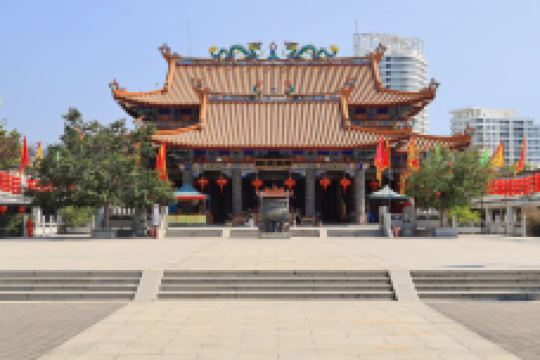 天后宫位于惠州巽寮湾旅游度假区内,始建于清朝末期,距今已有400多年历史,经过后期复建,如今这幢两层高的天后宫恢弘大气,香火不绝。 妈祖是沿海地带人民十分景仰的民间神祗,传说每逢有人海中遇险,妈祖便能显身救人。天后宫并不大,来此的游客多为祈福或瞻仰这座古寺,领略惠州人民的妈祖文化。天后宫所在的历史文化商业街拥有众多特色商品,旁边还有着一条美食街,都是值得一逛的去处。