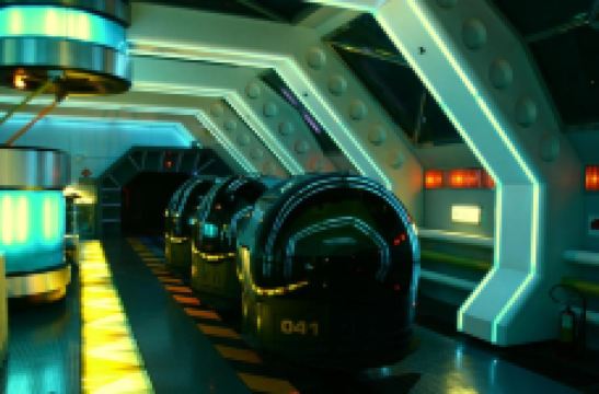 宇宙探险车 ,来宾将搭乘由十三节列车所组成的探险队,由太空站出发,先前往太阳,利用重力加速从内太阳系向外航行。探险队原本计划中的旅程是逐一游览各大行星,但在木星附近却发生了意外。探险队进入了外星人的世界,并借着他们的科技游历星系、经历超新星爆炸与黑洞强大的吸力,突破光速畅游时空,最后终于安全回到太空站上。这一段旅程将带给游客无限的期待与意外的惊喜!