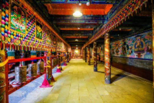 库伦旗宗教博物馆-兴源寺始建于清顺治六年(公元1649年),主要建筑有正殿(大经堂)、嘛呢殿、额克苏莫等。除了正殿外,其余建筑都是近年重新修建的。如今的正殿内供着的佛祖释迦摩尼像,左右两侧各有几尊铜像和泥塑像。在释迦摩尼像前面摆放着是札萨克达喇嘛宝座,殿内还藏有《甘珠尔经》和《丹珠尔经》的多卷经书。游客在大殿的地中心,还能观赏到石刻“四龙戏火炉”,据考证石刻是元朝文物。此外,游客在嘛呢殿内的墙壁上,能观赏到清代早期汉传佛教十八罗汉、藏传佛教十八罗汉及护法韦驮和多闻等壁画。