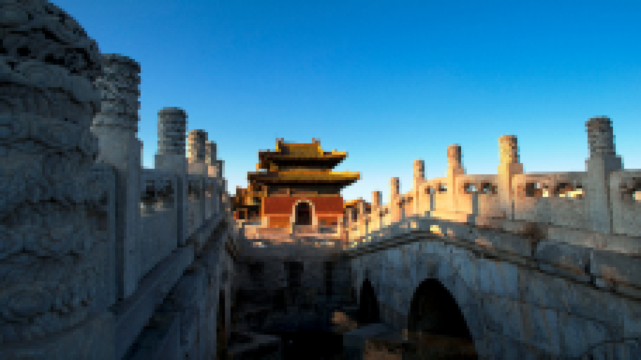 昌西陵位于泰陵的西侧,是仁宗嘉庆皇帝的孝和睿皇后的陵墓。该陵与清西陵其他后陵相比,规模较小,无方城、明楼和月牙城。除具有清代后陵种种建筑规制外,还具有与众不同的特点。一是隆恩殿内藻井彩画为丹凤展翅,独自翱翔;其他后陵则为三朵莲花衬以十八金点的水浪花纹。二是隆恩殿后与三座门之间有御河一条,河上有三座跨桥,中间一座有栏板,左右两座各为无栏平板桥。三是三座门前;围墙为方形,三座门后北墙为圆弧形,切入三座门的直墙上。圆形宝顶矗立于北弧墙前,祭台立于三座门的中门内。宝顶前神道正中嵌有回音石,游人至此发出声响,地下可将声响扩大数十倍传出来。弧墙两侧为回音壁,人于东侧细语发声,立于西侧的人以耳贴墙,可听到东侧人的声音如同打电话般地传来。这种被人称为地回声与回音壁的现象,甚为奇特。
