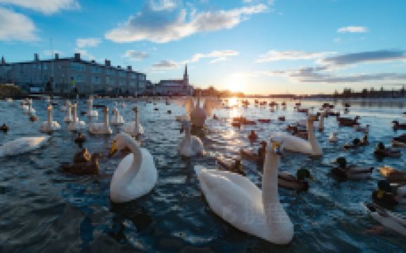 特约宁湖是位于雷克雅未克市中心的一个小湖,尽管它并不是冰岛较大的湖泊,但是确实较有名的一个。雷克雅未克市政厅就坐落在湖边,因为地热的缘故,即使在冬天湖面也不会结冰,所有沪上绘有很多鸭子、海鸥、天鹅等野生动物会在这里过冬。