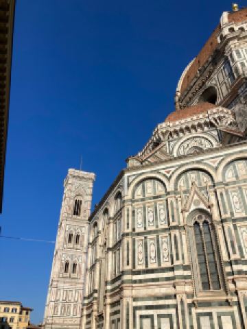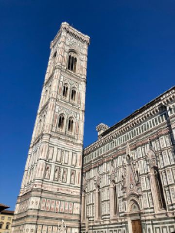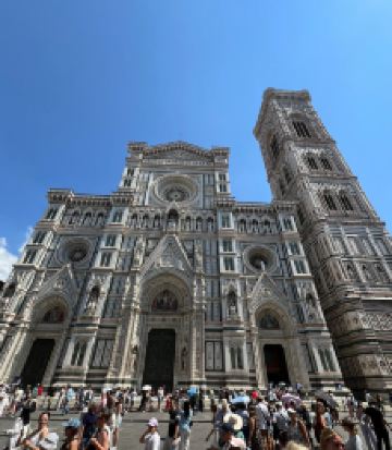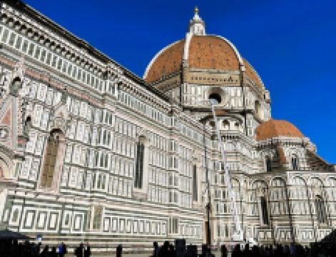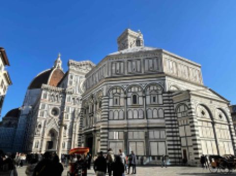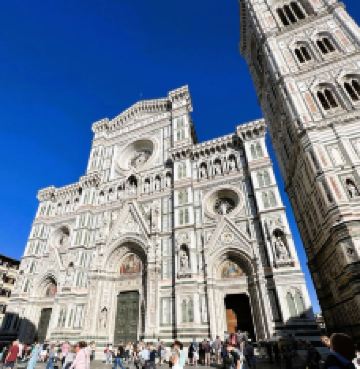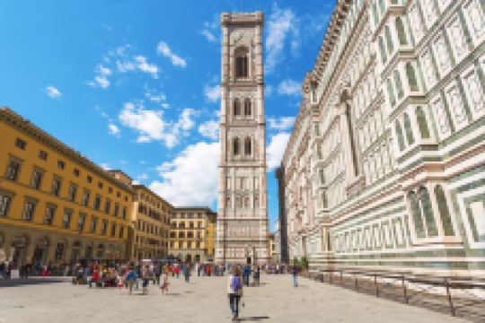 主教座堂广场是佛罗伦萨的精神核心和历史中心的灵魂所在,已被联合国教科文组织列为世界文化遗产。在这里,您可以一览城市的主要古迹,感受历史、艺术与美的集中展现,让人目不暇接。广场上矗立着圣母百花大教堂,拥有布鲁内莱斯基设计的圆顶、乔托设计的钟楼以及洗礼堂,周围环绕着历史建筑和大小博物馆。这一切共同构成了佛罗伦萨无与伦比的文化景观。