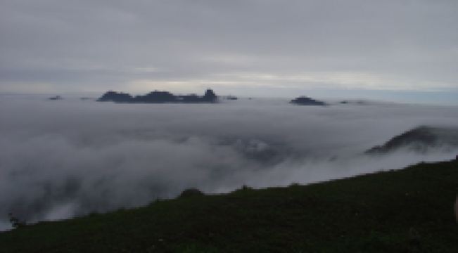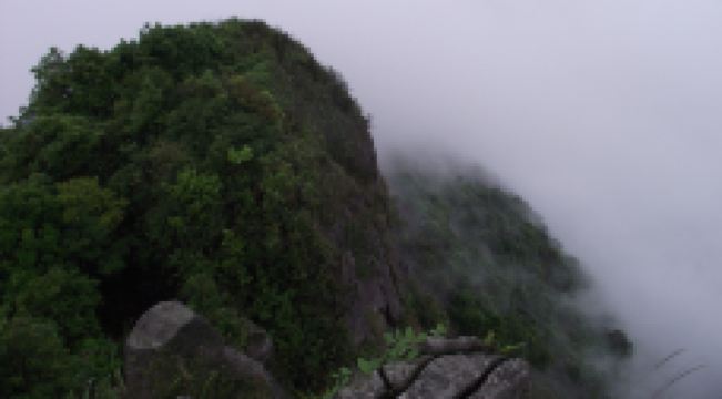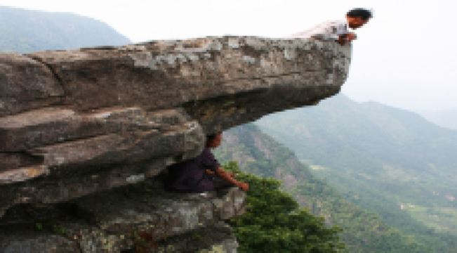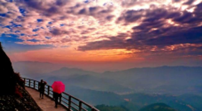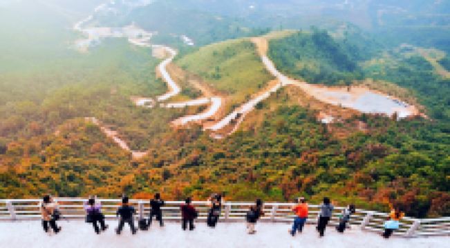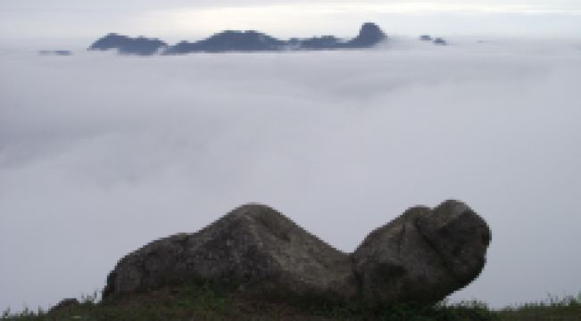 石根山景区位于广东广西交界处,在山脚仰望山体,尤如一根顶天石柱,直耸云天。山体海拔988米,虽不算高,但登山道蜿蜒崎岖,风景奇秀。倘徉山间,寻幽探胜,沿途奇峰怪石不断,一派原生态之景。除了悬崖栈道之外,这里的玻璃观光平台更是独具特色,它立于悬崖之上,又伸至悬崖之外,是观景平台,若是雨过天晴,云海缭绕之景更是让人惊叹。