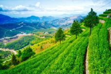 羊岩山茶文化园位于国家历史文化名城――临海市区西北30公里处。景区内主峰羊岩山海拔约786米,登峰顶可东观三门湾、南瞻临海城、西眺括苍巅、北望华顶云,古以“山顶石壁上有石影如羊”而得名,今因出产“羊岩勾青茶”而闻名。羊岩山茶文化园以优美的自然环境为条件,以茶产业为基础,以茶区多样性的自然景观和特定历史文化景观为依托,深入挖掘茶文化、宗教文化和生态文化的内涵。茶文化园分别由羊岩茶道、羊岩之巅、茶乐园、茶生态园等四大功能区和数十个景点组成,以体验式为特点,是养眼、养颜、养心的好去处。园区内除了优美的风景,较吸引人的莫过于网红彩虹滑道了。沿着茶园步道一路前行,远远便可看见单人与双人两条彩虹滑道,由七彩塑胶铺设而成,如两条色彩斑斓的缎带披挂在翠绿的茶园间。滑道双人道宽约3米,单人道宽约2米,全长90米,高低落差较大。坐在滑行道具中,双手握住两端把手,顺势而下,犹如从云端自然下滑,让人感到十分惊险刺激。