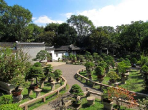 万景山庄是1982年建成开放的一座仿古建筑园林,为荟萃苏派盆景精华的专业盆景园,盆景之多列苏州市各园之冠。进虎丘大门,过海涌桥沿环山路东行百米即至。山庄面积24亩,面临碧波涟漪的环山河,背倚起伏的岗岭。庄内假山瀑布,松林小溪,环境幽雅;堂轩亭阁,回廊曲径,错落有致。和上山道西侧的拥翠山庄一样,万景山庄将自然景观与仿古建筑融为一体,成为虎丘风景区中又一个园中园,为虎丘增添了一个新的景点。