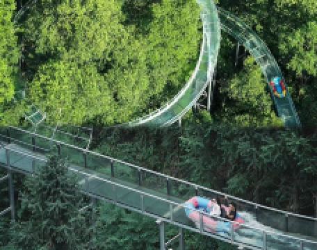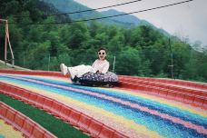 6、七彩滑道全长约200米 体验速度与激,在绿茵茵的草坪上流动,仿佛彩虹落入了人间,从坡顶一冲而下,体验的是贴地飞行的乐趣。