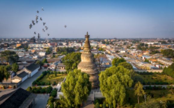 代县阿育王塔俗称白塔,位于代县城内古城圆果寺内,与边靖楼遥相对峙。阿育王塔始建于隋仁寿元年(公元601年),原为木结构,称“龙兴”,唐大中元年(公元847年)重建,改“龙兴”为“圆果”。之后的几百年里几废几兴,到元至元十二年(公元1275年)改建为砖塔,留存至今。