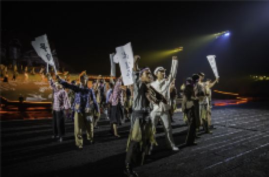民族史诗鸿篇巨制——《中国出了个领导人》 ,气势恢宏的版图,揭开不朽的历史记忆;气壮山河的篇章,见证一代伟人运筹帷幄勇定天下的壮举;走出韶山,走出湖南,热血青年从此走向民族救亡的漫漫征程;改造中国,改造世界,世纪伟人带领中国登上世界政治的舞台。歌、舞、诗、戏剧,湘江发出了时代的怒吼。农村包围城市,枪杆子里出政权,中国从此开天辟地,颠覆性的技术和手段,挑战世界室外舞台视听极限,多元化的创意和手法,再现中华民族传奇。全球很大实景演出《中国出了个领导人》 五大亮点:1、评价:经中央文献研究室、中共湖南省委宣传部、中共湖南省委 党史办专家审看,导向正确,史实准确,表现形式贴近受众,是一台有特色、有看点、有教育意义和审美价值的红色题材作品。2、舞台:首度使用中国版图舞台设计,多舞台呈现多视角的复杂演 出模式。2015 年 3 月该剧获得上海大世界基尼斯认证——很大户外 舞台(1.83 万平方米)。3、投影:韶山实景演出的多媒体投影面积之大在中国实景演出中独树一帜,展示了世界上少见的卓越技术和视觉震撼效果。4、座位:目前国内很大范围的观众席整体移动,2000 个座位上的 观众与剧情之间在情感和情绪上进行的语言互动交流以及技术方面 创造的独特的互动装置,也成为整部剧一大亮点,大大改善传统 实景剧的观演关系。5、威亚:韶山实景演出还有着震撼的舞台机械调度装置和高难度的 集体威亚表演,十七勇士飞夺泸定桥的集体威亚表演壮丽而刺激,在 观众头顶上方呈现,让观众身临其境。