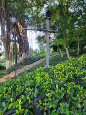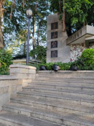 鼓浪屿岛上的一个被荒废的小公园。从龙山洞旁的台阶往山上爬的,台阶尽头是片茂密小森林,顺着被踩出的小路摸进去,可以看到几块巨石摞在一起,顺着一个颤巍巍的铁梯子爬到顶端,可以俯瞰鼓浪屿,是面向西北那一侧,内厝澳码头的方位。
