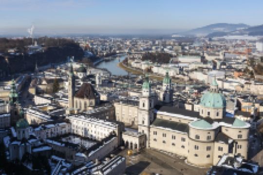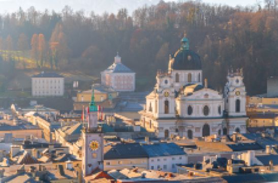 萨尔茨堡老城区是世界上唯一一个包含了中古世纪和巴洛克风格两种建筑群的城区。左侧老城区起于萨尔茨河岸,包括Nonntal中心地区、要塞山和霍恩萨尔茨堡要塞、整个僧侣山(位于霍恩萨尔茨堡要塞的右侧)。萨尔茨堡大部分的景点都集中在这个区域内,于1996年被列为联合国世界遗产。