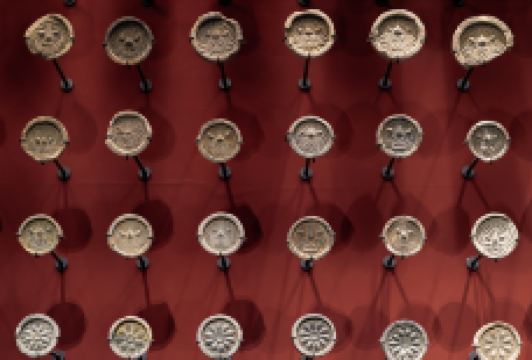 博物馆二层的“六朝风采”展厅内,展出了六朝时期的陶俑、青瓷、墓志、瓦当、石刻等大批珍贵文物。其中有翩翩起舞的男女陶俑。而瓦当上的一个个形似开怀笑脸的图形,也十分喜感。