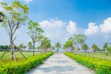 海鸥岛的海岸线很长,岛上有沙北、沙南、江鸥、海心等4个行政村。岛北端的海鸥大桥联通了莲花山水道与岛外,一条13公里长的公路由北往南贯穿全岛。所以租借单车在这条公路上慢慢的骑行是较好的游览方式,一边吹着海风,一边听着船只鸣笛的声音,看海天一色,非常的惬意。这条路从头骑到尾的话大概要一个半小时的时间,租借单车非常方便,路上也有驿站可以上厕所或者休息。