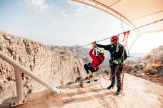 贾伊斯滑索是世界上较长的滑索。在高达60公里每小时的惊险速度下,翱翔在崎岖的山巅之间,穿越深邃的峡谷。在阿拉伯海湾上空1680米的高度,三分钟的肾上腺素飙升冒险将让您体验一次终身难忘的超级英雄魔法感。