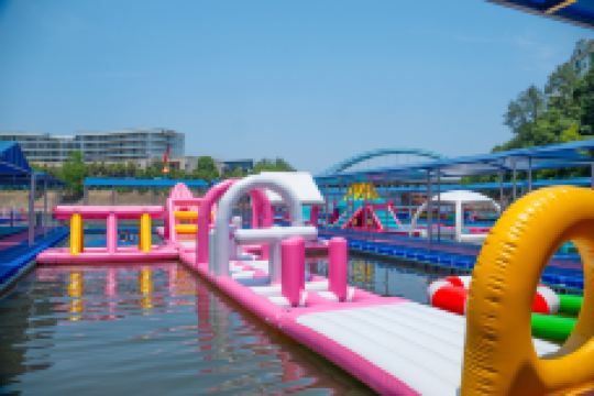 千岛湖中心湖区明豪水上乐园是一个以亲子、亲水、休闲等多元化主题运营的水上乐园,乐园总面积3000平方米,可同时容纳接待游客 800余人,目前运营除有亲子水乐园,成人闯关乐园,水上摩托艇、水上飞人、动力冲浪板、皮划艇、浆板等游乐产品外,还结合明豪酒店特色场内外灯光秀、水幕电影特别推出千岛湖夏季“夜间水上嘉年华”系列活动项目,千岛湖夜间游玩增添新玩法,满足了不同客户群体需求。 不管您是亲子度假、朋友出游,还是团队出游,明豪水上乐园丰富有趣的产品;安全、舒适的游乐环境,让每一位游客都能在这尽情体验盛夏戏水狂欢。项目位于千岛湖主城区内,地理位置优秀,距离中心湖区码头、千岛湖大桥、天屿山观景台等千岛湖热门景区仅5分钟车程。