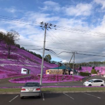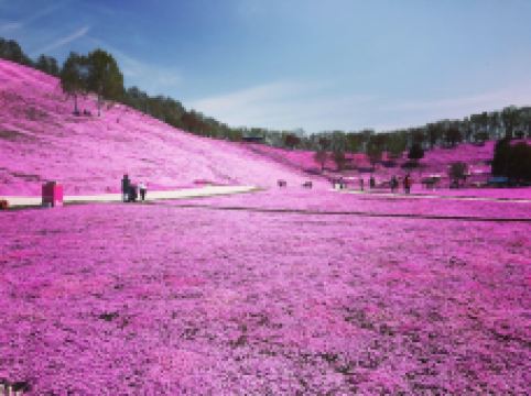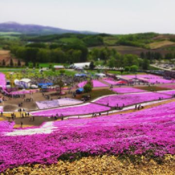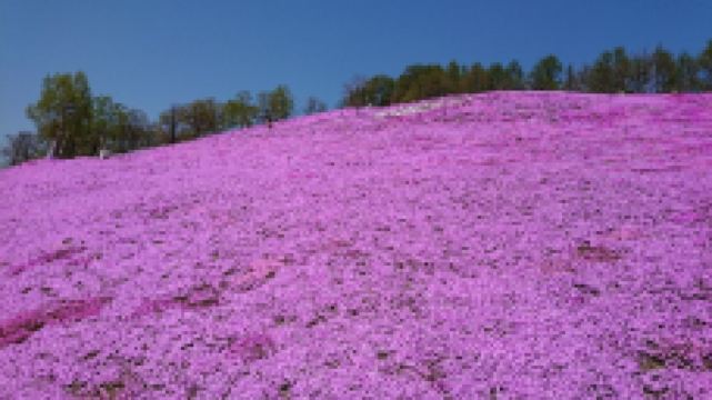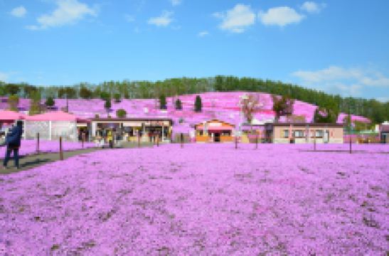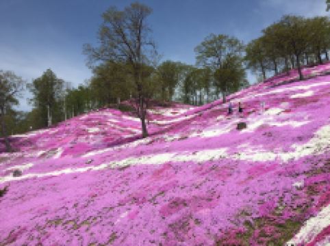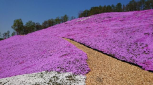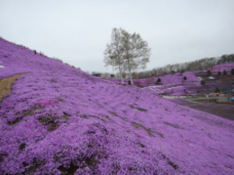 每年5月中旬到6月下旬,东藻琴芝樱公园所在的整座山丘,开遍了粉红色的芝樱,远远看去如同画布一般,色彩艳丽让人心动。芝樱并不是樱花,它因花形长得像樱花而有“樱”的名称。芝樱也不是长在树上的,而是覆盖在草地上,有的是桃红色,有的是雪白色。