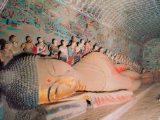 莫高窟148窟属于晚唐时期的作品,其壁画和雕塑体现了这一时期的艺术特点。窟内的壁画内容丰富多彩,主要包括经变图、供养人画像等。窟内的雕塑也颇具特色,尤其是主尊佛像,造型端庄,神态宁静,体现了晚唐时期佛像雕塑的成熟技艺。佛像两侧的菩萨和弟子像姿态各异,神情生动,展现了较高的雕刻技艺和艺术表现力。这些雕塑反映了当时社会的审美观念和文化特征。莫高窟148窟的艺术风格受到中原文化和西域文化的双重影响,形成了独特的敦煌风格。壁画中的人物形象、服饰、建筑等细节,既有中原传统的元素,也融入了西域的异域风情,体现了文化交流的成果。此外,莫高窟148窟的壁画和雕塑还反映了当时社会的经济状况和人们的生活习俗。