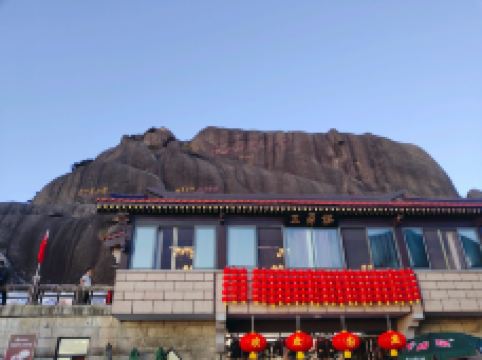 玉屏景区古称文殊院,是黄山的中心景区。玉屏景区以玉屏楼为中心,莲花峰和天都峰为主体,通常人们所说的前山,就是指的这一景区。沿途有“蓬莱三岛”、“百步云梯”、“一线天”、“新一线天”、“鳌鱼洞”等奇妙景观。玉屏景区是黄山绝胜处,有俗语云:“不到文殊院,不见黄山面。” 玉屏楼地处天都、莲花之间,这里几乎集黄山奇景之大成,故有黄山处之称,知名度很高的迎客松挺立在玉屏楼左侧,右侧有送客松,楼前有陪客松、文殊台,楼后是玉屏峰,有名的“玉屏卧佛“就在峰顶,头左脚右,惟妙惟肖。