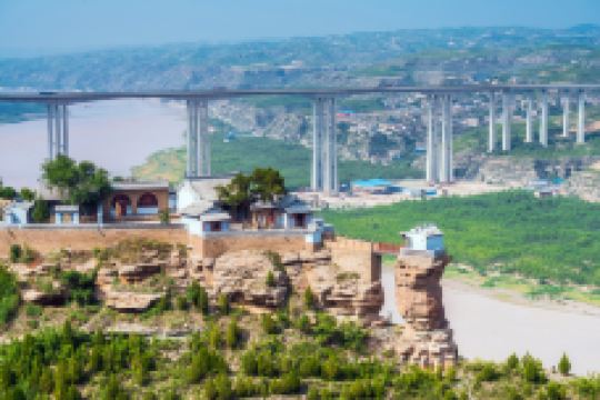 香炉寺位于佳县县城东200米的香炉峰峰顶,东临黄河,三面绝空,仅西北面以一狭径与县城古城门相通。峰前有直径5米,高20余米一巨石矗立,与主峰间隔2米,形似高足香炉,故而得寺名,素有佳县八景之一“香炉晚照”之美誉。香炉寺地势险峻,香炉石凌空而起,断桥惊险异常,置身其上,如凌绝空际,低头俯看,滔滔黄河激流而下,汹涌澎湃,佳临黄河大桥横贯东西,如龙卧波。