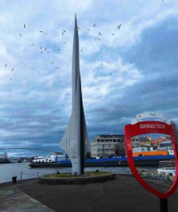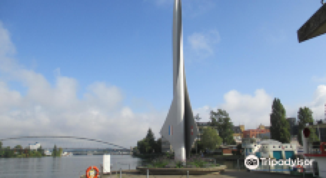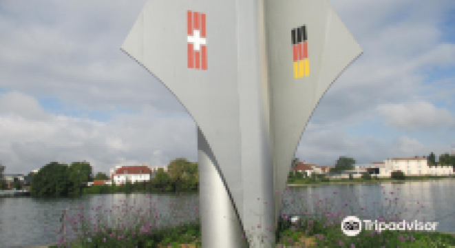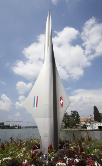 巴塞尔紧邻德国和法国,是三国交界的城市。在交接点处有一座火箭形的雕塑,雕塑被称为是“三国国境交界纪念碑”。上面刻有瑞士、法国、德国3个国家的国旗。纪念碑前有一座横跨莱茵河的大桥,在桥的两侧可以清晰辨认出国界的标志。