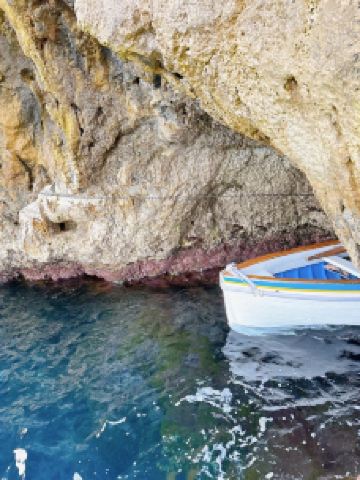 蓝洞是卡普里知名的景点,甚至说很多人去卡普里的目的就是为了蓝洞也不为过。由于洞口的特殊结构,使得洞里的海水一片晶蓝。蓝洞表层的海水呈现幽幽的深蓝色,而深层海水却是天蓝色的,海水映衬得洞中的岩石也都一片蔚蓝。天气晴朗的时候,蓝洞分外美丽和妖娆。