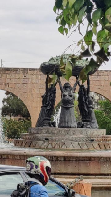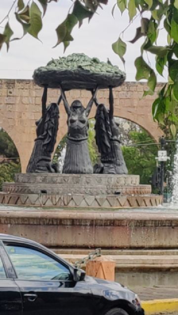 Tarascas喷泉位于墨西哥莫雷利亚,这个喷泉雕像是20世纪60年代重新制作的仿制品,原来的雕像于1940年神秘消失。整个喷泉是三个美丽的女子拖着一个果盘,姿态优美,泉水从果盘中冲天而上,很是漂亮。