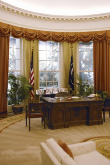 图书馆采用了西班牙殖民时代的造型,有一座喷泉中庭花园。馆中藏有很多里根在职时间签署的文件,和上万件白宫文件和历史影片。此外,你在这里还能看到一些里根私人生活的点点滴滴。 在里根图书馆大门前,有一块巨大的砖石,来自德国柏林,是当时柏林墙的残块。