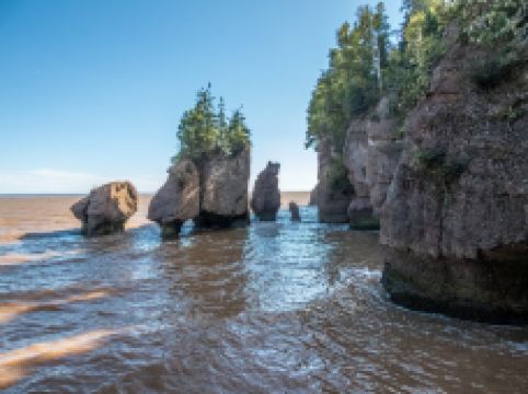 当千亿吨海水注入芬迪湾时,它创造出了世界知名的潮汐:15米,几乎是一幢4层楼建筑的高度。每年约有18万游客前来此地欣赏这个地理奇观。潮落时您可以漫步于裸露的海床,寻找各种贝类,或者前往游客中心,了解有关潮汐、花盆岩、鲸鱼和当地文化的故事。涨潮时划着皮划艇在花盆岩中划桨,欣赏这些由于地质作用而形成的独特构造。每年夏天还能在此观赏到百万只候鸟。