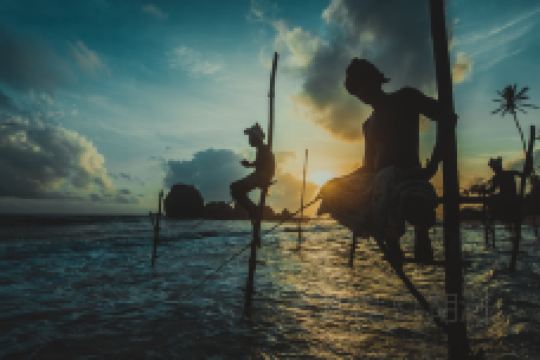 集中在西南海岸的浅海区的斯里兰卡高跷渔民,分布于加勒到美蕊沙的沿岸,以小镇科格勒为出名。1. 高跷渔夫缘起据说是因为渔夫们买不起渔船出海打鱼,而兰卡南部沿海边小沙丁鱼又特别多,所以渔民基本都涉水到达浸泡在海水中的木桩那里,爬上去,然后坐在简陋的木架上,架开鱼竿钓鱼。他们的目标就是大量游弋在浅海区的沙丁鱼,有时候运气好,分分钟都有鱼上钩。更令人称奇的是他们的鱼竿可是没有鱼饵的,难怪被称为“世上牛的钓鱼方式”。2. 现状现在的高跷渔民已经不多了,更多的都是带有表演性质的摆拍。