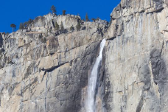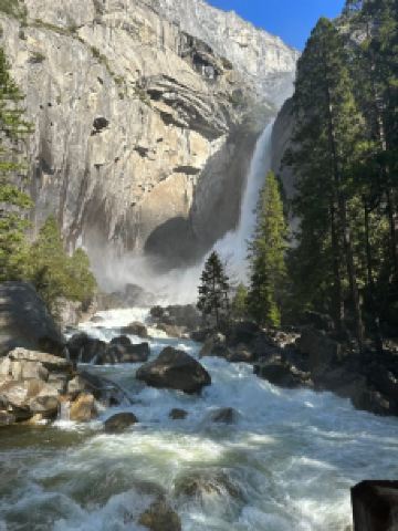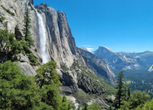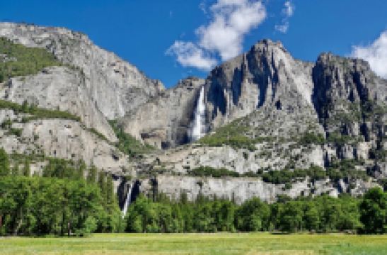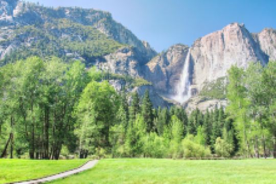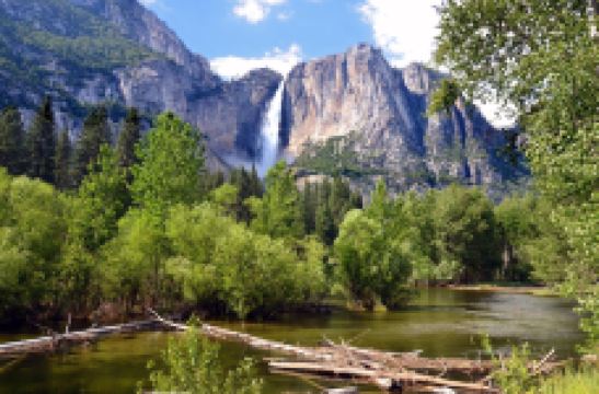优胜美地瀑布位于优胜美地国家公园,是全美较高的瀑布之一。瀑布总落差可以达到720米,分为上中下三段,场景十分震撼。每年五月份是冰川消融时,这里的水量可以达到非常大。而夏季8月至10月是旱季,这里的水量会减小甚至断流,瀑布会像在风中飘散一般,也是另一种风情。在优胜美地谷区、冰川点等处眺望,你可以看到瀑布全景,欣赏那瀑布奔腾而下的壮观景象。