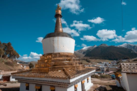 甘丹赛赤寺在甘肃省一侧,于藏历第十三胜生土龙年(公元1748年)创建,是藏传佛教(格鲁派)较大的寺院。现有大经堂、弥勒殿、金瓦殿、续部经堂、长寿殿、马头明王殿、禅和塔等十余座建筑,并有闻思、续部、时轮、医学、雕版印经等五大学院。