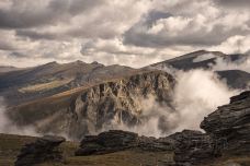 洛矶山国家公园涵盖洛矶山脉精华的山脊线,富饶森林、山谷、冰河、高山湖泊、冻原和各种的野生动物群,每年的访客数高达三百万人,而秋枫时分则是它比较受欢迎也很漂亮的季节。面对几千米高的洛矶山脉,开车上山相对实际多了,公园东段的34号公路,又称山岭路(Trail Ridge Road),是全美境内海拔至高的连续铺面柏油公路,也是洛矶山国家公园具有代表性的路段。游客可以从东边的埃斯特斯帕克(Estes Park)驶入,驱车登上海拔约3713米的棱线后,直抵西边的格兰德湖(Grand Lake),或是反向行驶;沿途欣赏横贯洛矶山国家公园平均海拔超过3000米的壮阔景观、日出日落的变化,许多游客更是喜爱在制高点留影拍照,享受君临天下的乐趣。想看日出的人,建议提早30分钟抵达Bear Lake Trail Head,沿着湖畔散步等待日出;想看日落的人,建议前往South Lateral Moraine Trail至Moraine Park观赏夕阳。