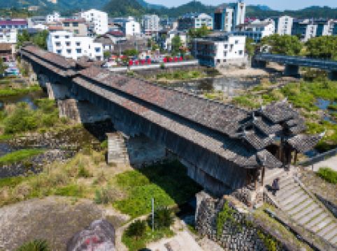 永和桥位于龙泉市安仁镇境内,离城40公里。是浙江省保存较好较长的廊桥。该桥为木石结构的廊屋桥,全长125.7米,其下砌石墩5座,4孔,桥上廊屋42间,重檐顶。当心间屋顶升起,为歇山顶,翼角起翘。永和桥桥两端有桥头堡,各为石台阶27级。桥梁采用筒支、悬臂结合式的建筑方法,桥屋雕梁画栋,飞檐斗拱层叠,桥内设栏杆、木凳。永和桥初建于明成化元年(1465年),取名永宁。清顺治间(1644-1661)毁于火。康熙五十七年(1718年)重建改今名;咸丰五年(1855年)被洪水冲塌二墩,六年重修,1911年夏,山洪暴发又复冲二墩,次年重修加固。