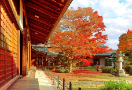 源光庵始建于1346年,原是临济宗大德寺彻翁义亨的隐居之地,1694年改为曹洞宗的寺院,鹰峰三景之一。这里有两处知名景观,一是许多人慕名而来的两扇窗。本堂左侧的圆窗叫“顿悟之窗”,代表禅、智慧和整个宇宙世界。右面的正方形窗叫“迷惘之窗”,代表人间世界的执迷不悟、逃脱不掉的生老病死和四苦八苦。这颇有禅意的设计让每一个来这里的人都可以静下心来欣赏这里的美景,思考人生。二是“桃山血天井”,位于源光庵进门处的本堂,是忠魂的象征。值得一提的是,本堂的天井是伏见城的遗留部分。