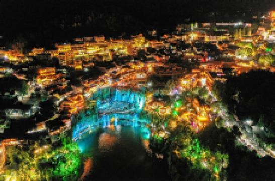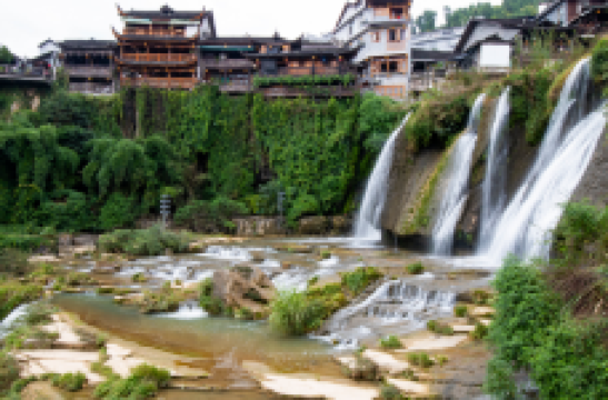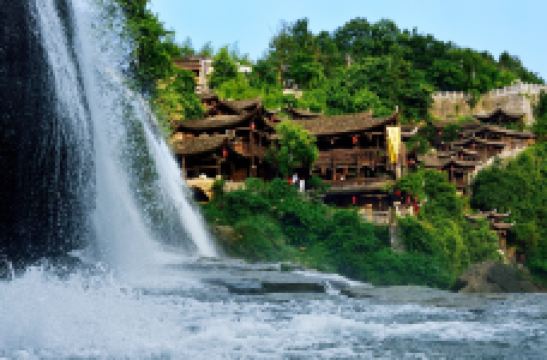 古镇中心地带建在一片高大的山石上,一条落差几十米的瀑布悬挂在古镇脚下,镇内的土家吊脚楼紧邻瀑布而建,因此也被称为“挂在瀑布上的千年古镇”。如果你时间充裕,可以选择在吊脚楼中的旅馆住宿一晚,伴随着哗哗的瀑布流水声进入梦乡。