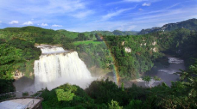 瀑布水沿着瀑面倾泻而下,声势浩大,场面蔚为壮观,令人惊叹。运气好的话还可以看到美丽的彩虹。这里也是86版电视剧《西游记》片尾曲的取景地。
