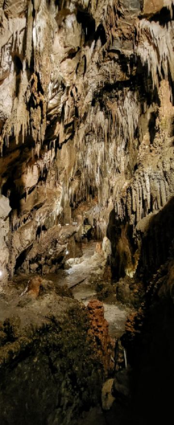 这是一处很干净的溶洞,这里有很多不同种类的石笋和钟乳石,还展示有已经灭绝的恐鸟骨骼,十分神奇。