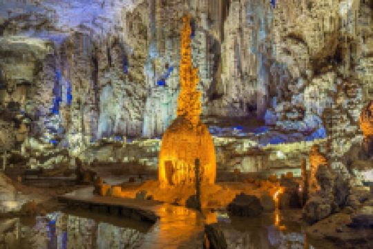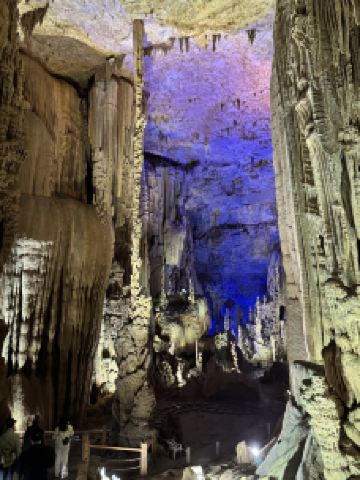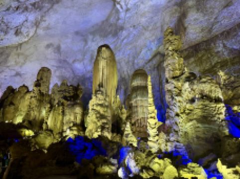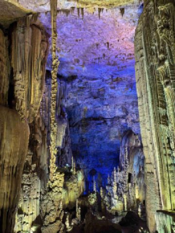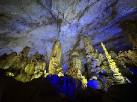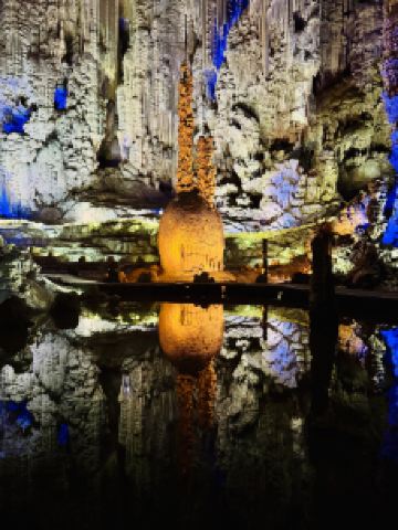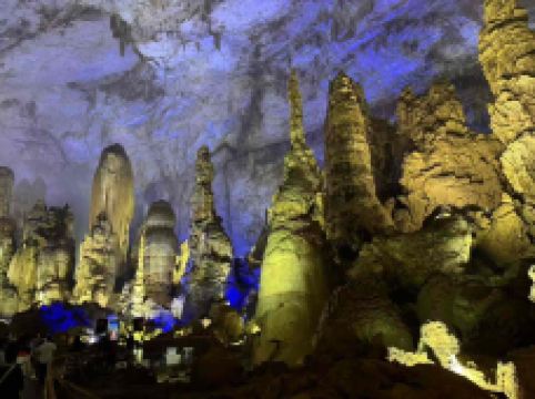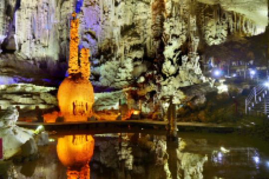 织金洞,是中国目前发现的一座规模宏伟、造型奇特的洞穴资源宝库,洞中遍布各种形状的石笋、石柱、石芽、钟旗等,形成千姿百态的岩溶景观。由于整个洞穴景区的游览路线是单向行走路线,所以只要进洞就必须走完全程,从出口出来以后再搭乘电瓶车回到景区门口。