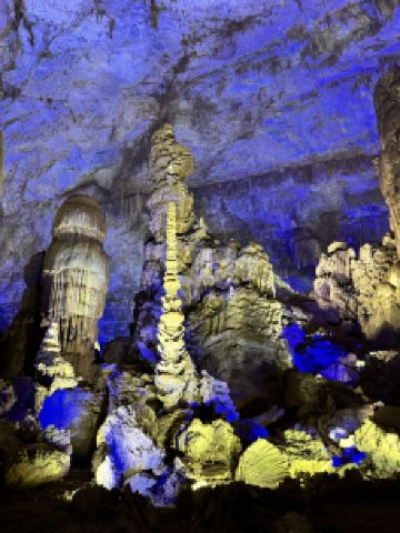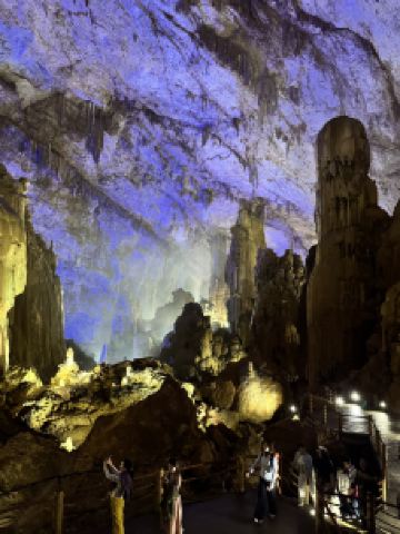 在洞穴里可以欣赏到遍布的石笋、石柱、石芽、钟旗等各种堆积岩石,形成千姿百态的岩溶景观。洞道纵横曲折,石峰星罗四布。万千景象,美不胜收,令人不经感慨大自然的鬼斧神工。买票进入景区后,一般20-30人为一批,有导游跟随讲解。在淡季,必须凑够10人才能进洞,因为洞大路多,为防止游客迷路走丢,必须紧跟导游游览。