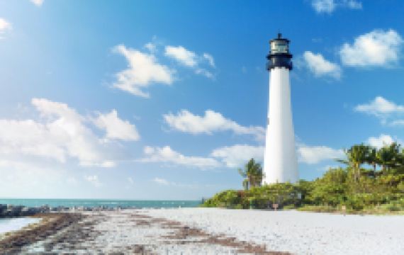 比尔博格斯海角佛罗里达州立公园位于与迈阿密市区隔海相望的比斯坎岛南端,公园的海滩是全美十大海滩之一,海角灯塔建于1825年,是佛州现存的古老的灯塔。公园风景宜人,设施齐备,你可以在海滩上享受日光浴,或是骑车、钓鱼、划皮划艇、野餐。
