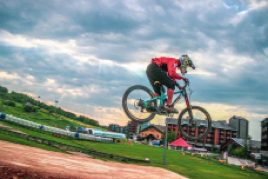 中旅松花湖滑雪场是当地十分有名的滑雪场。万科松花湖度假区位于美丽的北国江城吉林市,吉林是粉雪的故乡,属北温带大陆性季风气候,山体绵延于长白山脉。这里的冰雪产业基础和冰雪文化深厚,与欧洲的阿尔卑斯山和北美的落基山同属于国际粉雪黄金纬度带北纬42度,被誉为“雾凇之都,滑雪天堂”。滑雪面积达220公顷,能同时满足10000人滑雪,50条优质雪道总长55公里,主题式分区设计,初雪、进阶、道内、野雪、公园,不同等级不同玩法滑雪者互不干扰,初、中、高级雪道国际黄金比例4:4:2。让大家畅滑极具包容性与趣味性的雪道,满足不同度假客群需求。5条国际雪联认证雪道,可以举办大小回转及坡面障碍等专业赛事活动。6条进口高速缆车、8条魔毯,每小时运力达22000人次。
