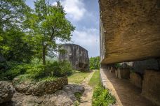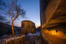 阳山碑材位于南京市区以东23公里处的阳山南玻,这里在明代以前就是古采石场,石碑的三个部分碑座、碑额、碑身均已能看出形状,可受条件限制却没有组装起来。这也使得今天我们得以一观这个历史上大的烂尾工程之一,石碑的三部分若组装起来,将高达73米,确实令人叹为观止。从南京市区去往阳山碑材的公交不多,而且需等候的时间较长,有条件的话自驾前往。阳山脚下有明文化村,仿造明代的村落,建有镖局、商铺、比武台等。明文化村里有赐御婚、水上飞狮、东厂校武等表演看,具体演出时间可以关注下村中木牌上的告示,还有射箭之类的游乐项目玩,需另外付费。从明文化村到阳山碑材,可以走古采石场的路,也可以走雁门山奇石坡,去时走的哪一条,回来走另一条即是。雁门山奇石坡沿路有很多奇形怪状的石头,到指示牌处,指示牌指示右边通往碑额、碑身,左边通往碑座,先去看哪一边不是很有讲究。碑额高10米,长20米,在巨石的半腰处凿出三个方形石洞,推测是为日后截断做的准备工作。碑额之后,硕大的碑身横卧于地,先不论将它立起来有多高,光是横卧在那,就已有三层楼那么高。碑座离碑额大约200米,乍看之下犹如一座小山。游玩过阳山碑材后,可以东行,顺路游览古猿人洞,然后到汤山泡温泉,这些景点与温泉都在一条游览线上,是值得推荐的南京近郊游路线。
