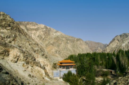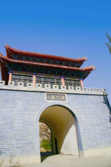 现在看到的铁门关城楼为新修建的仿古砖木门楼,过门楼往里走即是后人在孔雀河上修筑的水电站,还建有水上游艇等娱乐设施。