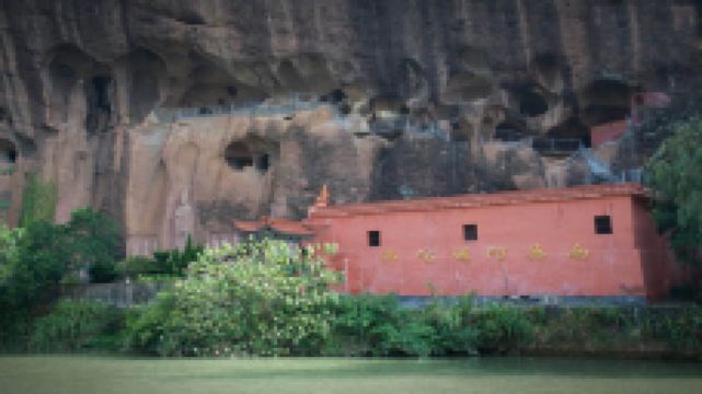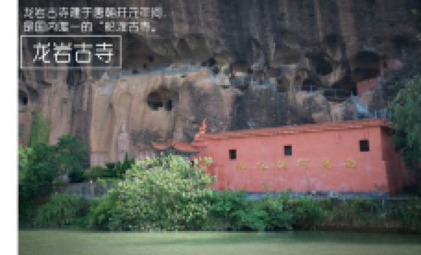 青龙岩风景区位于江西省寻乌县南桥镇青龙村的寻乌河畔,属于中国南方特有的丹霞地貌,由中生代红色砂砾岩构成,以赤壁丹霞之天然石窟为景区特色,犹如“风神之吻”,其天然石窟之多、形态造型之异、巧夺天工之美,素有“北麦积山”、“南青龙岩”之称。青龙丹霞地貌内秉气质强烈,体现阳刚大气之美,突兀、奇险、幽长、峭峻皆鬼斧神工,如千年古渡龙岩寺、天国烽火旧遗址、曲径通幽西风道、斧砍刀削一线天、惟妙惟肖金刚山等,以其旖旎独特的自然风光,耐人寻味的奇闻轶事和传奇动人的神话传说,体现了丹霞文化和雄浑历史的无穷魅力。