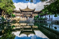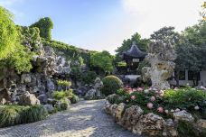 何园园主何芷舠,是与晚清重臣李鸿章、光绪帝师孙家鼐联姻的扬州士绅,于光绪九年(公元1883年)建造了这个私家园林。它有“晚清第一园”的美誉,园中建筑中西合璧,并由复道回廊串联,布局富有层次感。全园由后花园、住所院落和位于东南部的片石山房(一堆假山石,仅剩遗迹,规模极小)几部分组成,各部分之间,通过复道回廊(扬州人俗称为“串楼”,就是分为上、下两层的回廊)连成一体。这种上、下两层的回廊,是景区建筑具有特色的部分,园中人员通过回廊在园中穿行,雨天避雨、晴天遮阳,不受天气影响。而一串串开在复道回廊上的漏窗、空窗,组成的花窗带,也是园内的一大特色。后花园从布局上分为东、西两个部分,主要建筑有船厅、水心亭等。东部,以“厅堂”为中心构成一组院落,其中“船厅”厅型似船形,四周用鹅卵石、瓦片铺地,花纹是水波状,给人以水中而居的感觉。花园的西部,中间有一个水池,水池中建有水心亭,是园内主人观看戏剧表演的地方,“水中戏亭”的设计独具匠心。园中的老少主人们,居住在南部的玉绣楼,这是一幢中西合璧风格的建筑。既采用了中国传统的砖木结构,又大量使用了法式的百叶门窗、日本式的拉门、法式的壁炉、铁艺的床等。目前它还是国内影视剧取景的天然基地,新版《红楼梦》、《还珠格格》续集等近百部影视剧在此取景。景区面积不大,游客通过复道回廊可以到达园内任何一处。景区有东门和南门两个门,游客由东门出入,南门不对外开放。在东门处有导游服务,这里的导游称为“何家千金”,是由一批身穿晚清风韵服装的年轻女孩组成,这些美丽的导游本身也是景区一景。在它的东南方不远处(步行约10分钟),就是卢氏盐商住宅,这里目前是扬州有名的淮扬菜馆。
