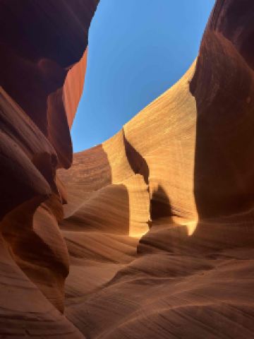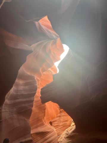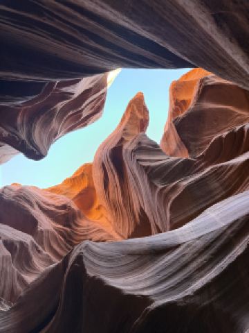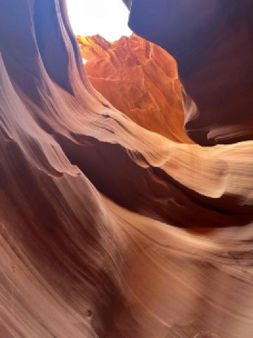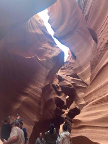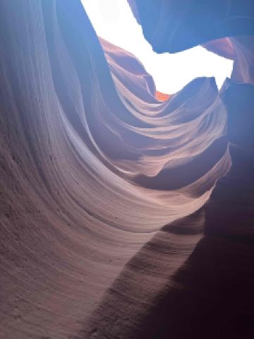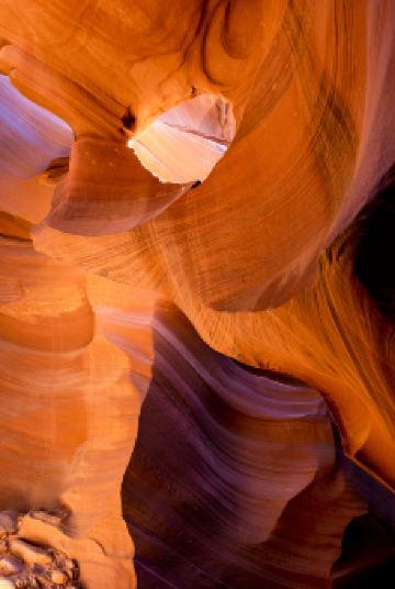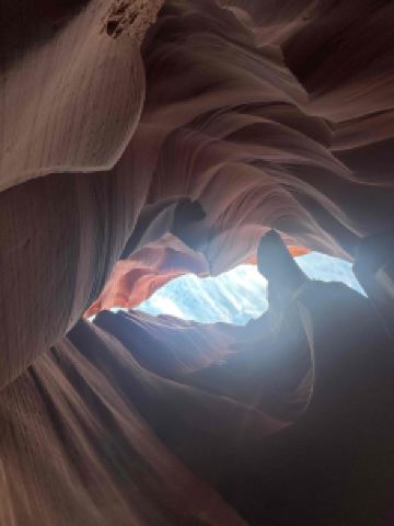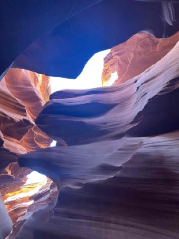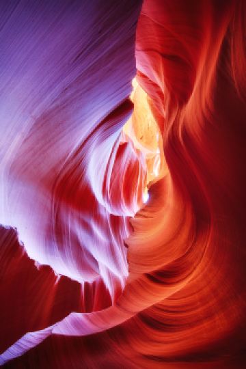 世界上知名的狭缝型峡谷之一,也是有名的摄影景点,位于美国亚利桑纳州北方,靠近的城市为佩吉市,属于纳瓦荷保护区。羚羊峡谷在地形上分为两个部分,称为上羚羊峡谷与下羚羊峡谷。下羚羊峡谷中没有任何人工照明,所有可见的光线均来自于峡谷顶部的裂缝,这些光线经过岩石纹理的反复折射 进入谷底,产生出梦幻般不规则的色彩变化,这些色彩由深至浅,又由浅至深,七彩斑斓,美轮美奂。