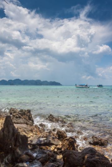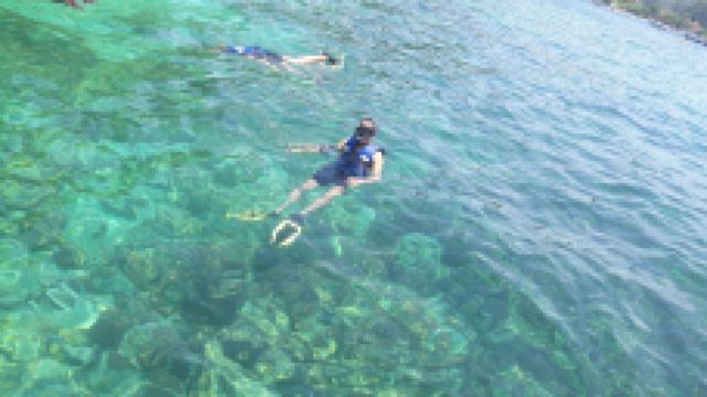 蚊子岛东边是岩岸,一个美丽的小海滩被环绕在山谷,清澈的海水中隐约可见绚丽的珊瑚礁岩,这里有皮皮岛漂亮的珊瑚岩,吸引着众多游客前来浮潜。蚊子岛位于大皮皮岛北部方向,是一个小岛,岛上的蚊子非常多,所以基本来此游览的游客都不上岛,只是在周边海域浮潜。这里水深约3-6米,有着丰富的热带海洋生物,可以看到海葵和小丑鱼。